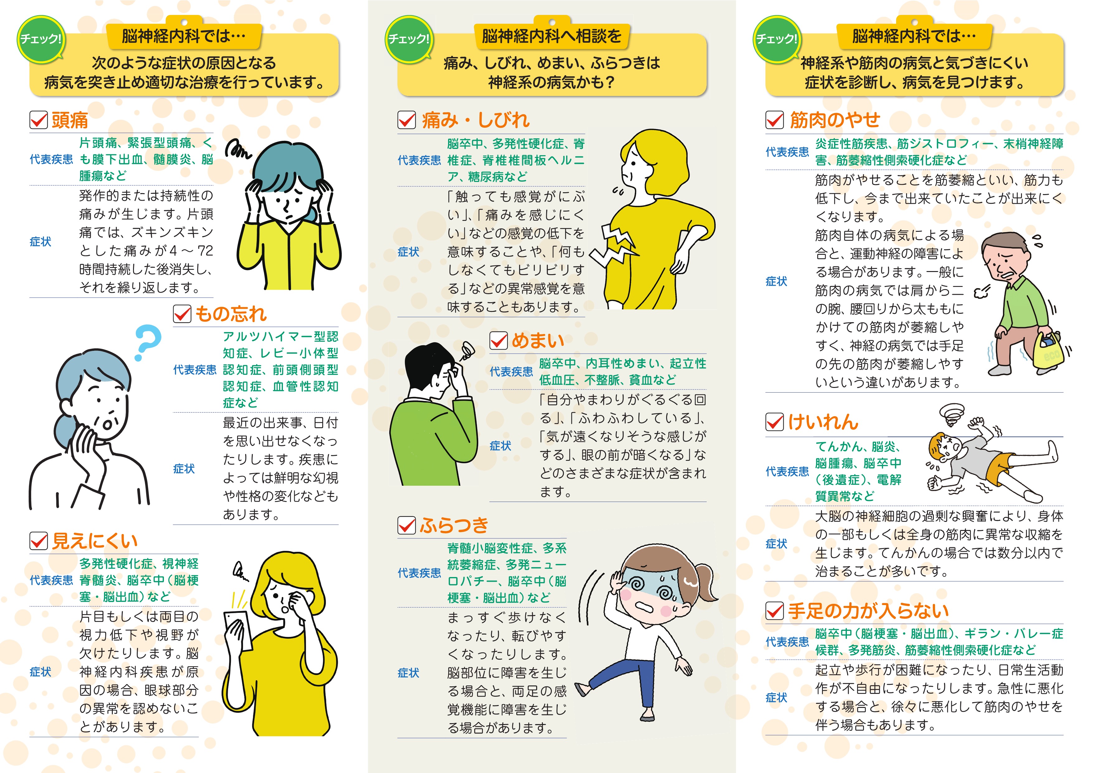 脳神経内科は、よく神経科や心療内科と間違われますが、全く違う内容です。
